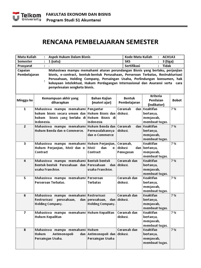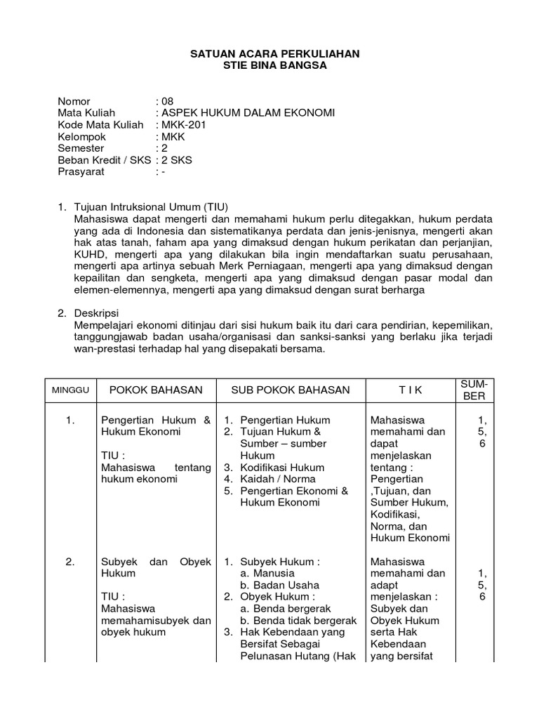 SAP (Silabus) Aspek Hukum Dalam Bisnis