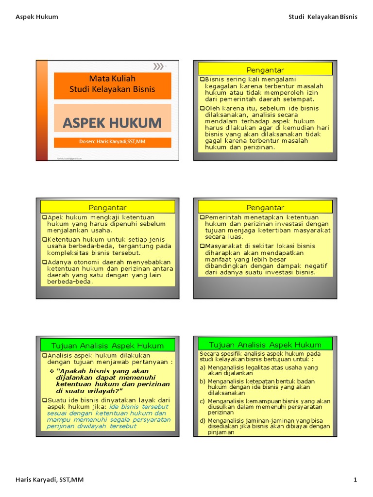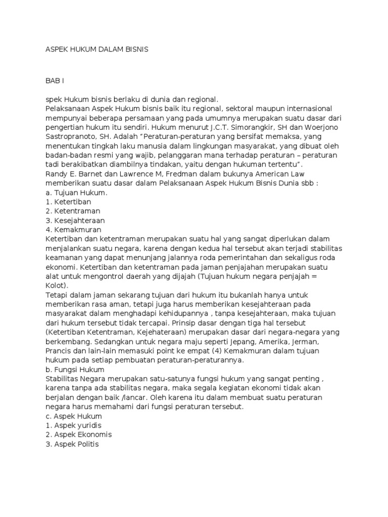 Aspek hukum dalam bisnis pdf. Aspek hukum dalam bisnis 1 (satu) kode mata kuliah sks pada harijum'at tanggal 18 maret 2016telah dilakukan penyusunan rencana pembelajaran semester (rps) dan deskripsi tugas untuk mata kuliah aspek hukum dalam bisnis. •bagi peneliti studi kelayakan bisnis, dokumen yang perlu diteliti keabsahan, kesempuranaan dan keasliannya meliputi badan hukum, perizinan yang dimiliki, sertifikat tanah atau dokumen lainnya yang mendukung kegiatan usaha. Yang terkait 4 setelah mengikuti praktikum,.
