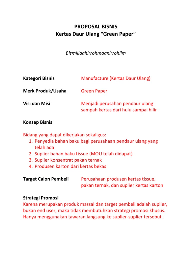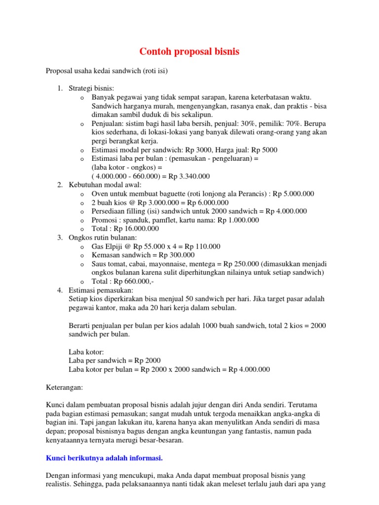 Sri fitri dayanti nisn : Namun banyak juga yang masih buta, mereka harus mencari referensi contoh proposal untuk mereka tiru dan sesuaikan dengan kebutuhan mereka. Penjelasan tentang bisnis yang kita lakukan apakah termasuk bisnis baru, pengambilalihan (takeover), perluasan, franchise, atau keagenan.